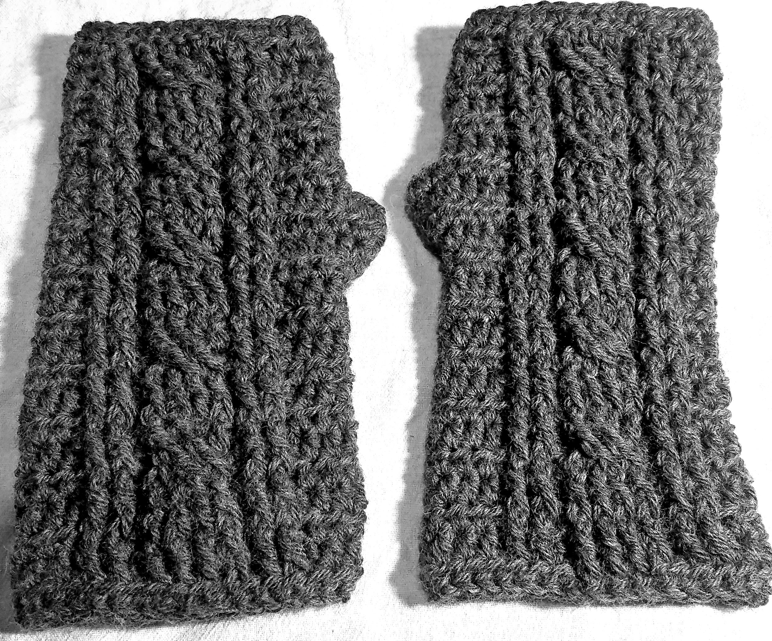 Lastly, I’ve had some requests for fingerless mitts, and I discovered this cute pattern, Cable Wrist Warmer. It’s a nice design and easy to make, but the pattern lacks some editing. Makes me want to design my own…