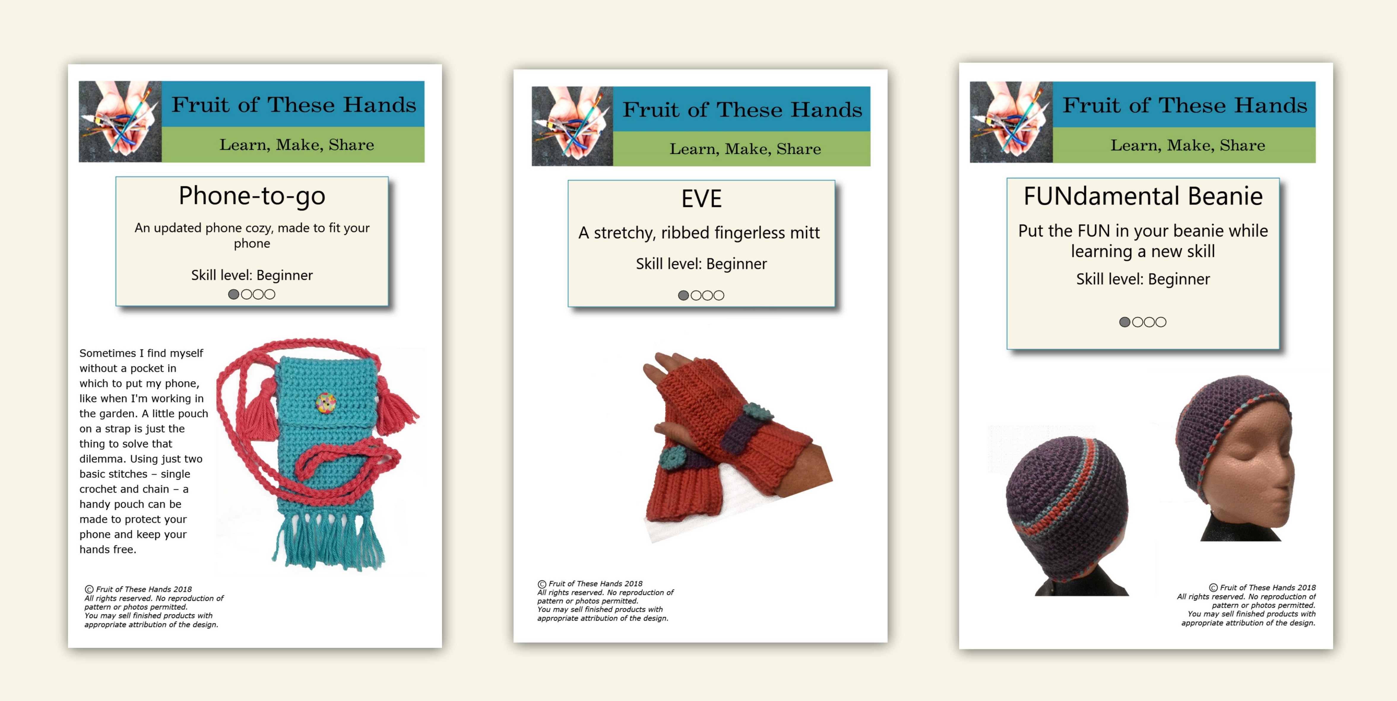 One project that took quite a bit of time and effort was getting a teaching plan and patterns ready for a project for The Yarn Store (TYS). The store wanted to reach out to the university crowd by offering kits at a reasonable price. The kits are for either crochet or knit and include how-to instructions for beginners, five patterns, yarn and tools in a pouch plus lessons with an instructor. Another woman did the knit portion, and I did the crochet portion. I wrote three original patterns, a photo-tutorial on a granny square scarf in chart form, and an adaptation of the Amazing Grace headband. Since starting this blog, I’ve been updating my color scheme in my patterns, so you’ll notice that they coordinate well with the blog. I also like the bi-fold style layout which looks like this: