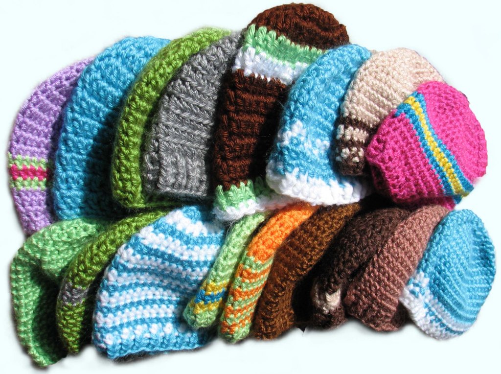 The basic crocheted beanie begins at the crown and works down to the brim. With a few essentials in hand, you can crochet a beanie any size.